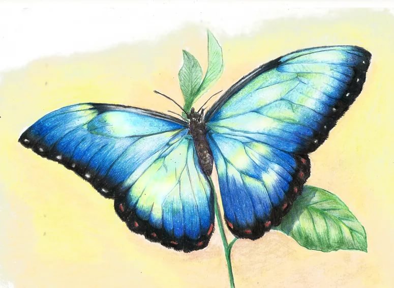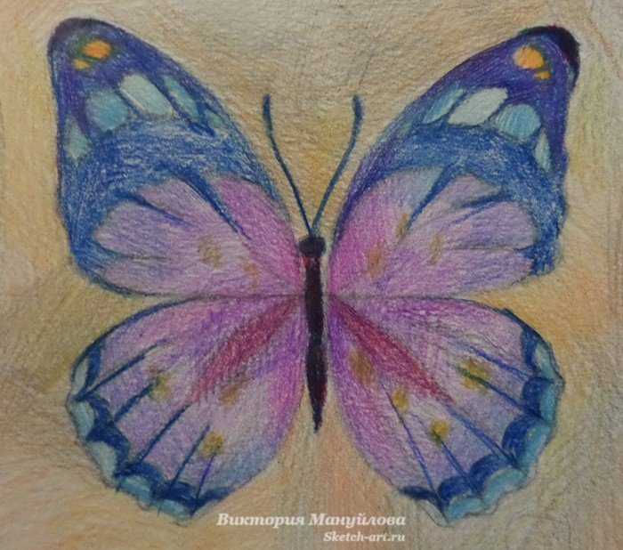 Бабочка цветными карандашами