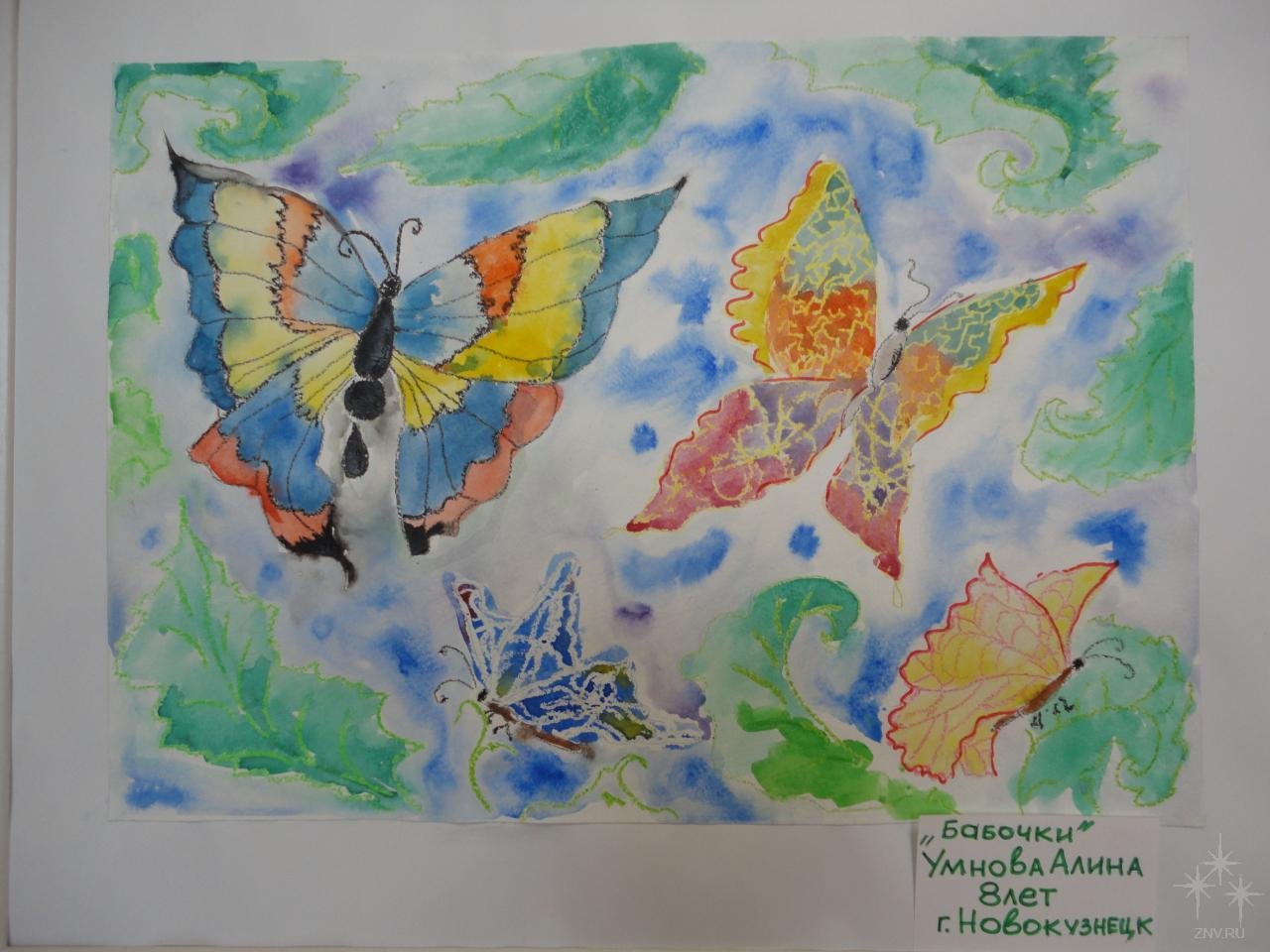 Рисование бабочек восковыми мелками и акварелью
