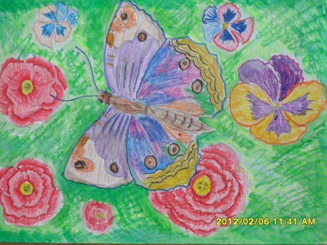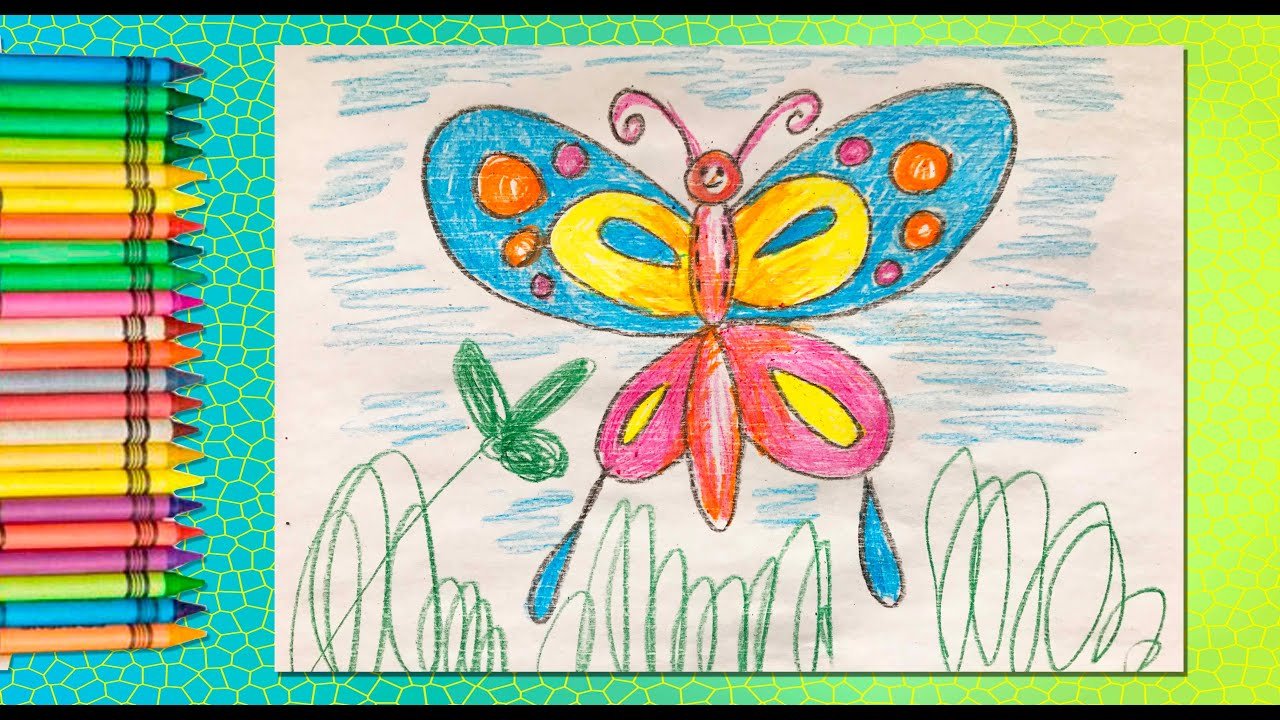 Рисование бабочки восковыми мелками