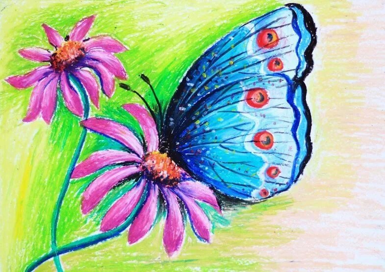 Рисование пастелью для детей бабочка