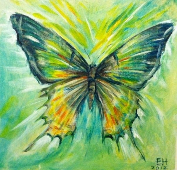 Бабочка зеленая живопись