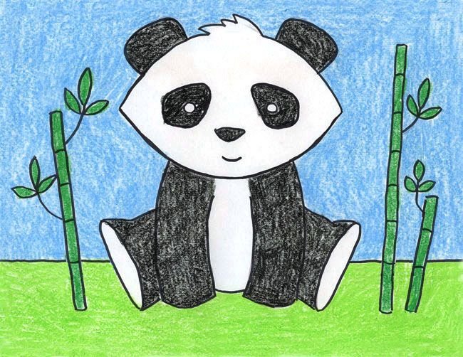 Панда с бамбуком рисунок