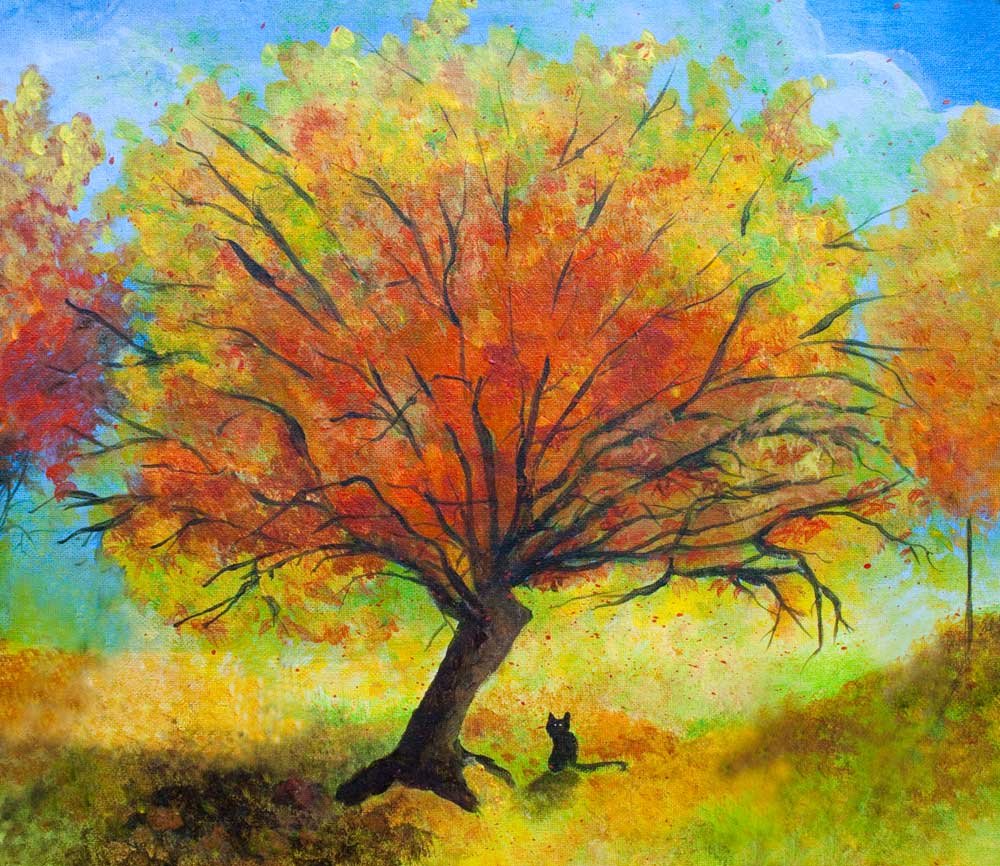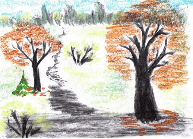 Осеннее дерево, изображенное на данном рисунке, представлено в мельчайших деталях, что придает ему неповторимый шарм и нежность. Отчетливо видно каждую веточку, покрытую яркими осенними листьями различных оттенков - от теплых оранжевых и красных до глубоких коричневых и золотистых. При этом, мельчайшие штрихи и линии, которыми выполнена работа, создают эффект движения и естественности, словно дерево колышется под легким осенним ветерком. Этот рисунок идеален для создания атмосферы уюта и тепла в интерьере, а также станет прекрасным подарком или элементом декора для любителей природы и искусства.