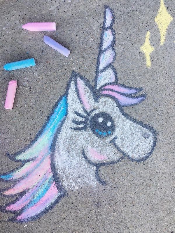 Единорог мелками на асфальте