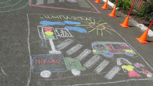 Рисунки на асфальте ПДД