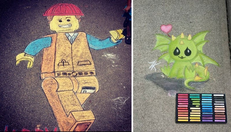 Интересные рисунки мелками