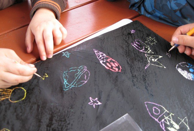 Техника граттаж космос для детей