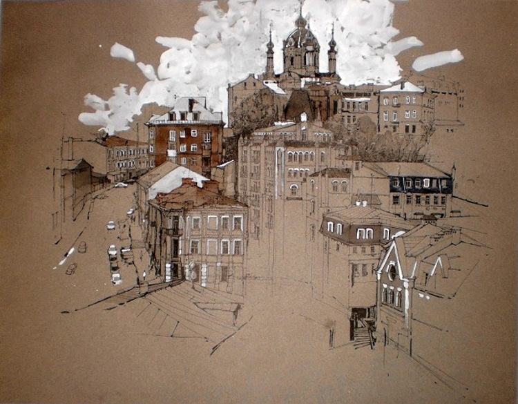 ![Граттаж город]()