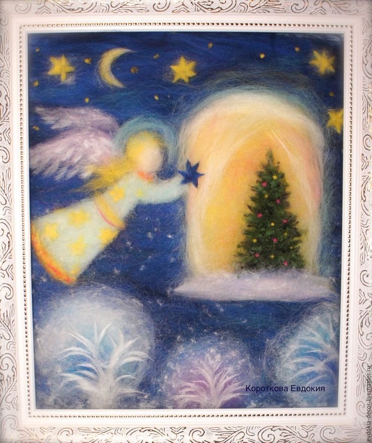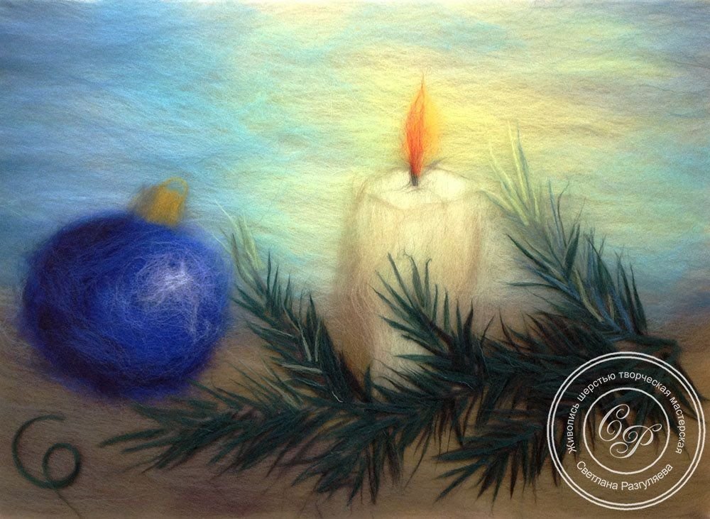 Картины из шерсти новый год