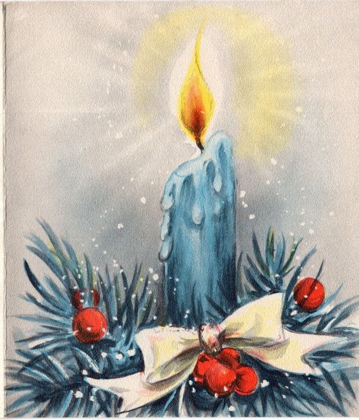Рождественская свеча акварель