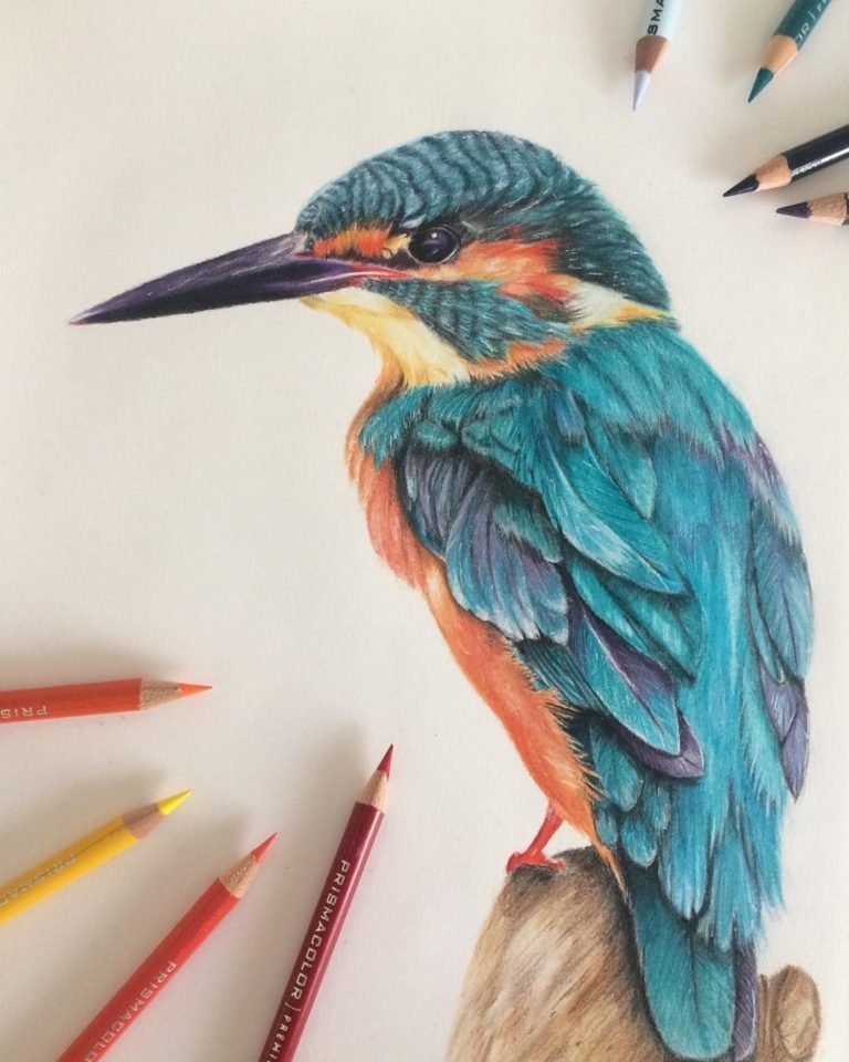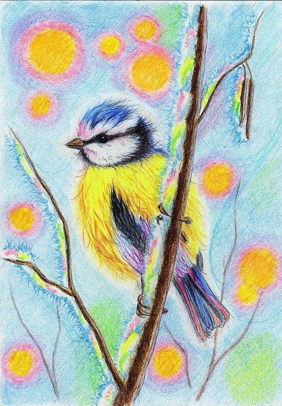 Птицы цветными карандашами