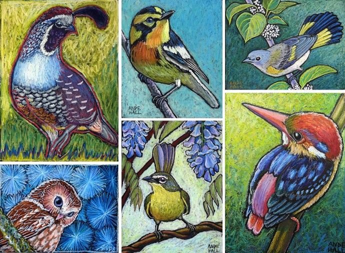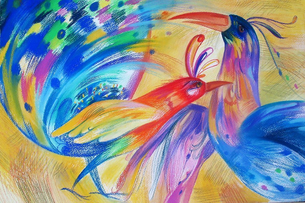 Птицы пастелью