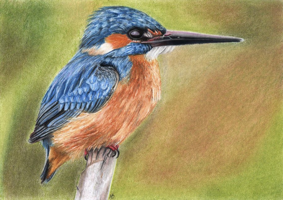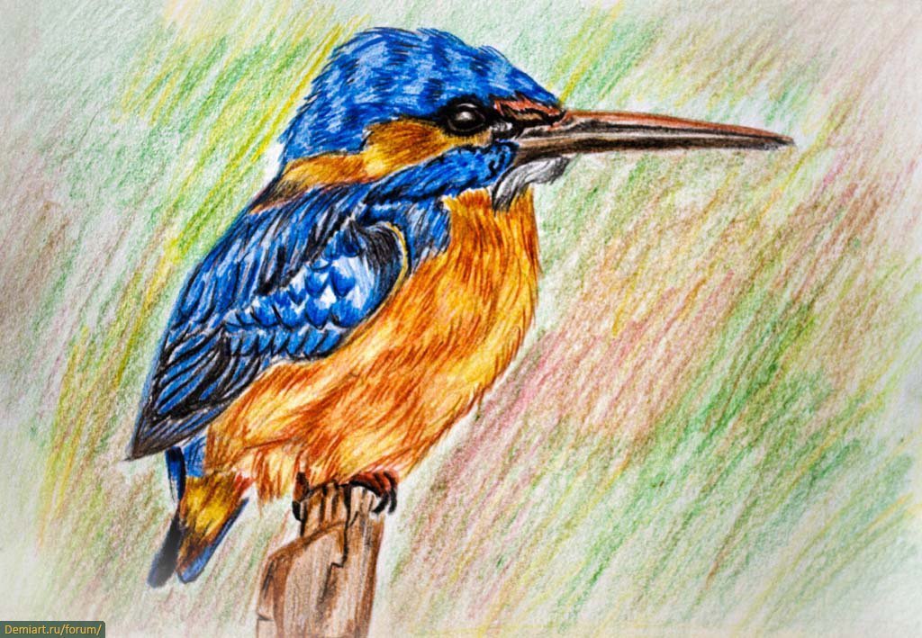 Зимородок пастелью