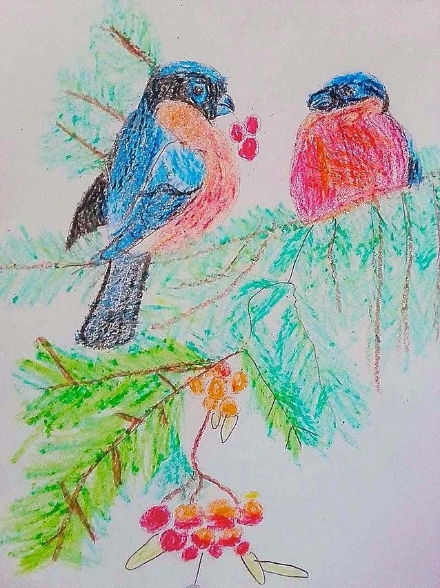 Рисование масляной пастелью птиц для детей