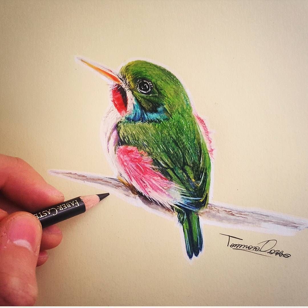 Колибри цветными карандашами