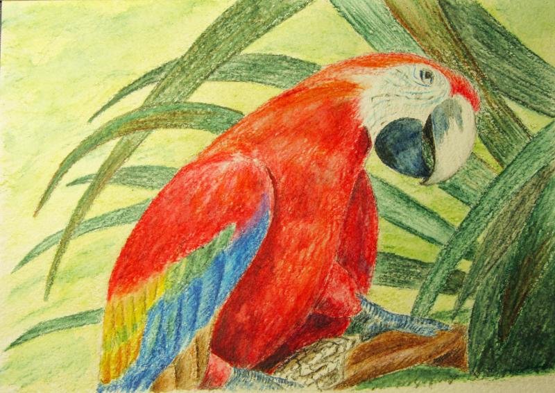 Попугай сухой пастелью