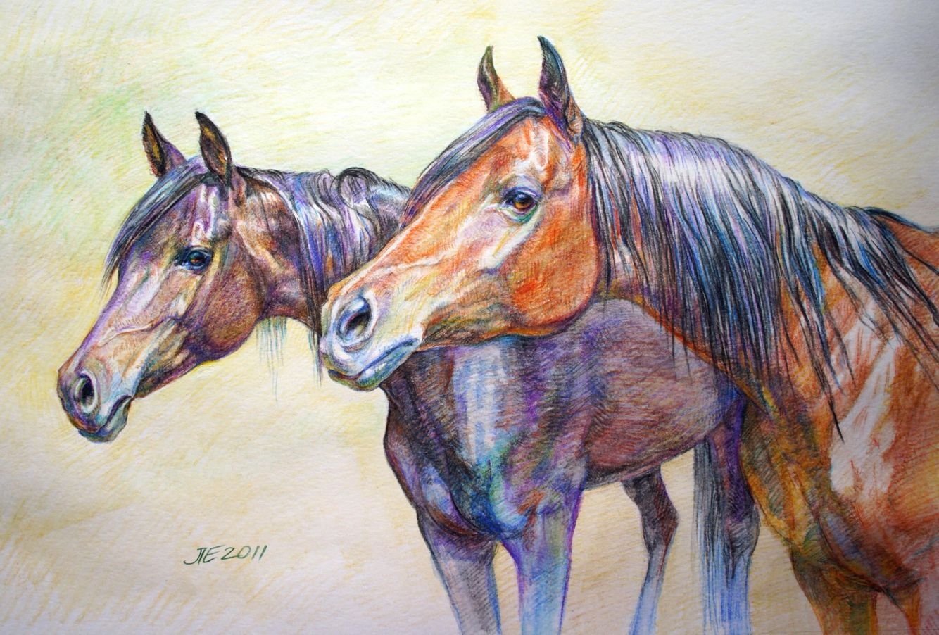 Лошадь карандашом и краской