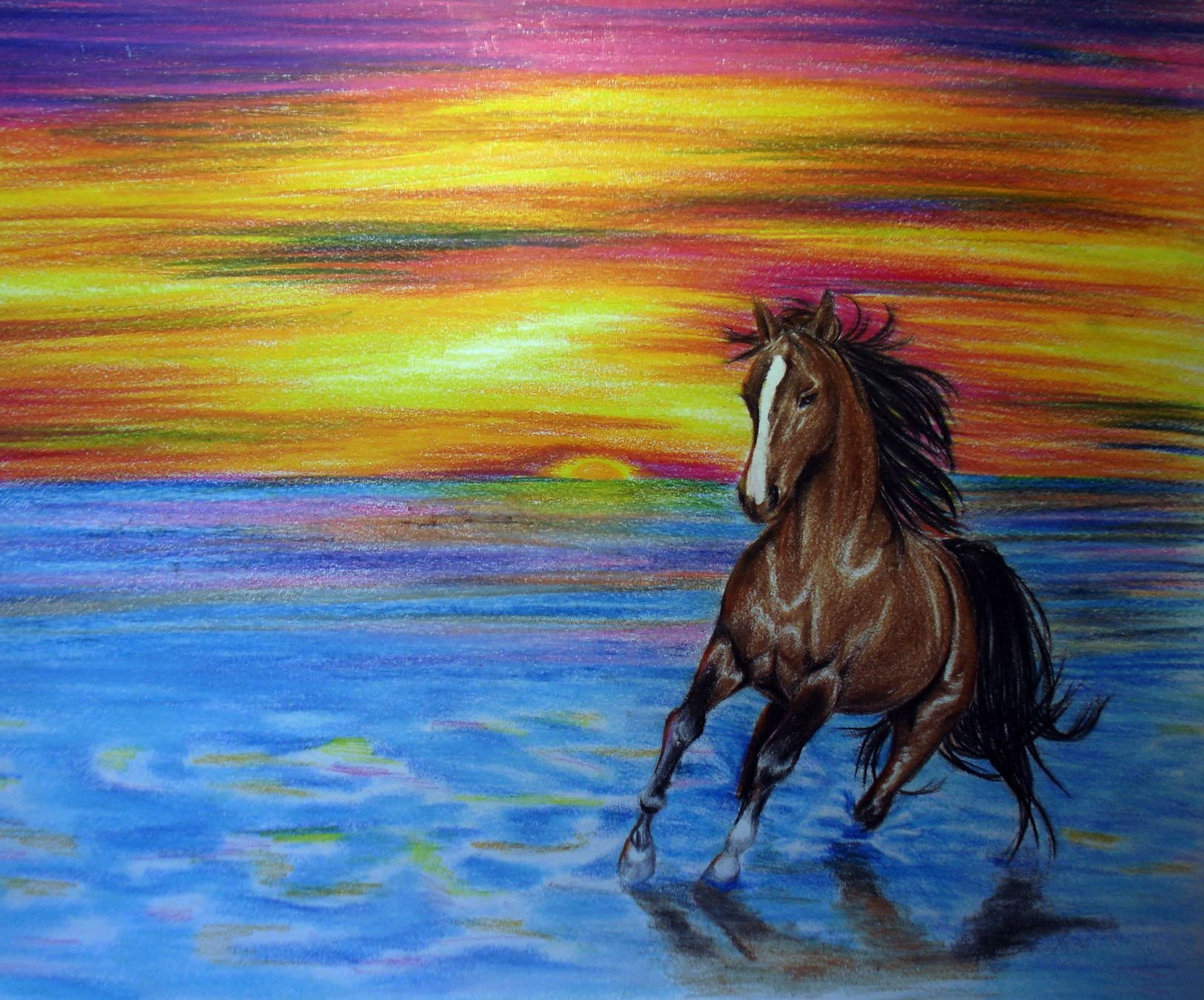 Лошадь акварельными карандашами