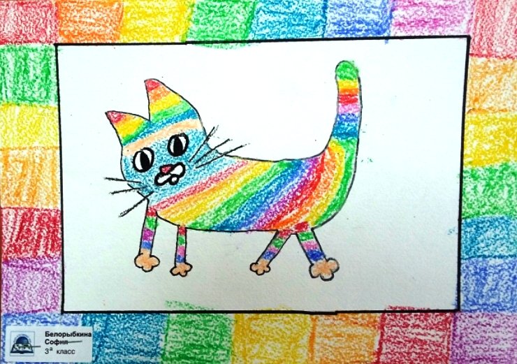 Кот рисование восковыми мелками