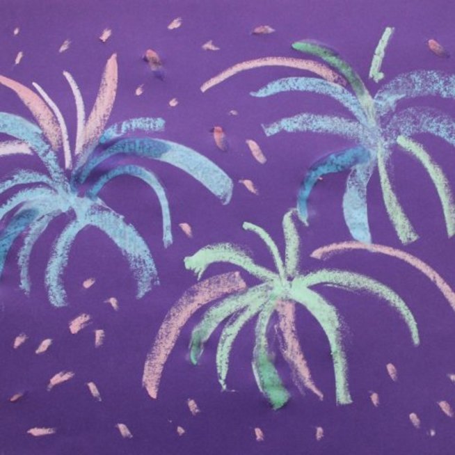 Салют восковыми мелками и акварелью