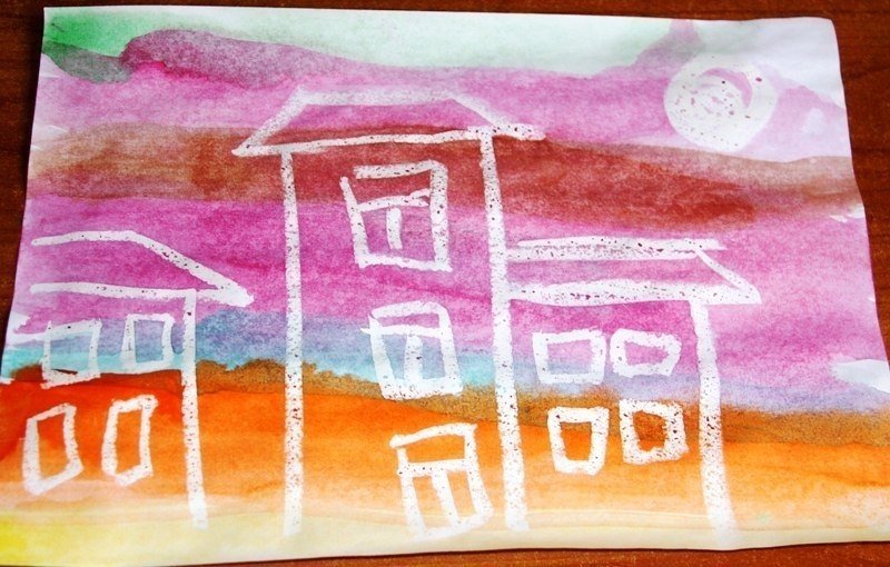 Техника рисования свечой и акварелью
