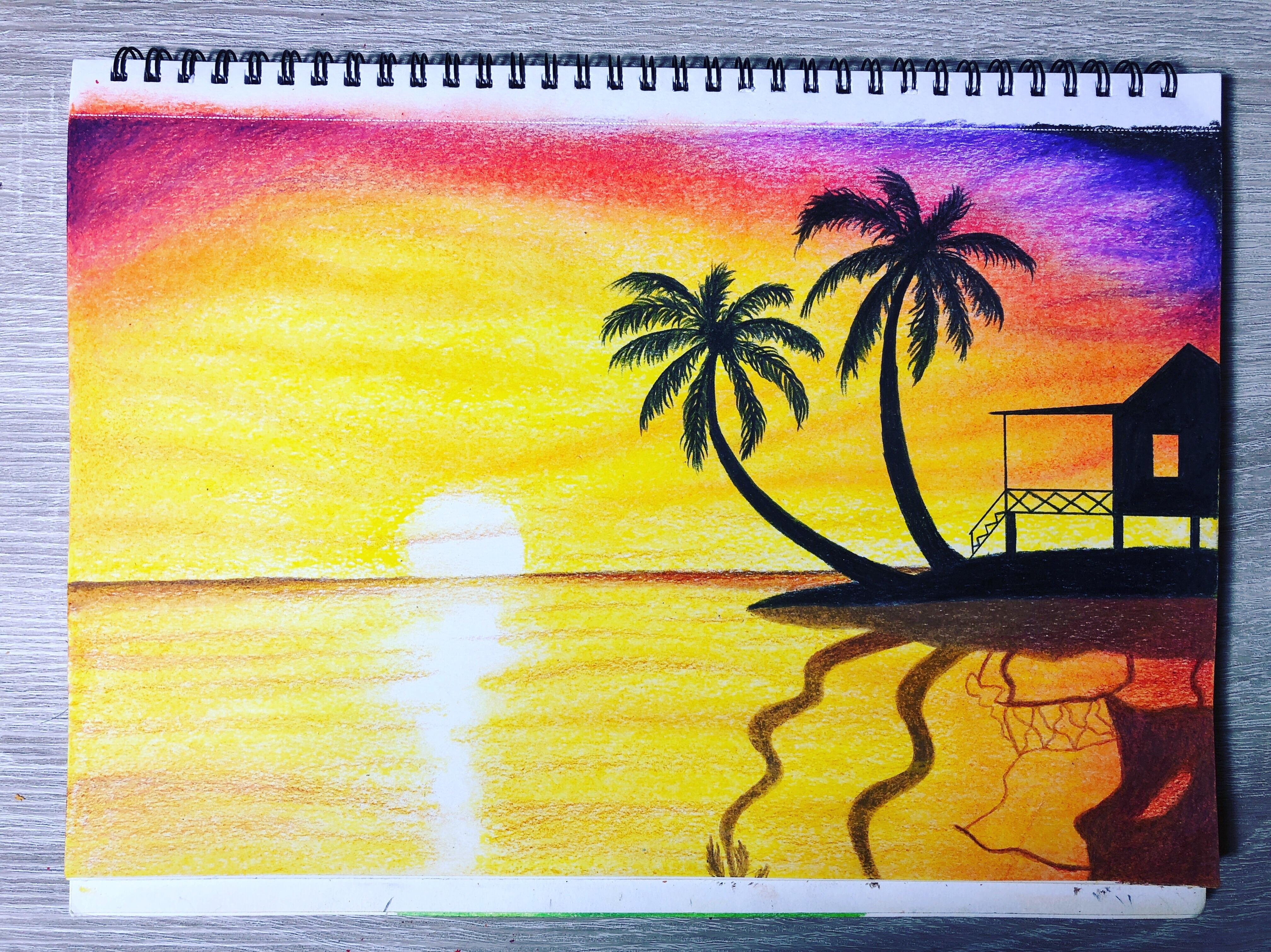 Закат рисунок карандашом