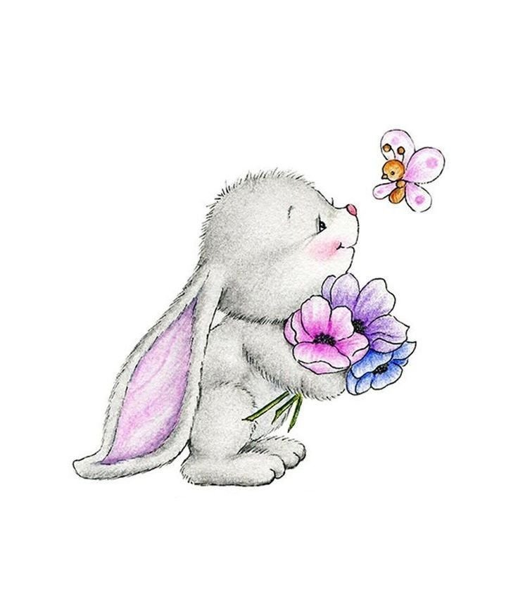 ![Милый зайчик с цветами]()