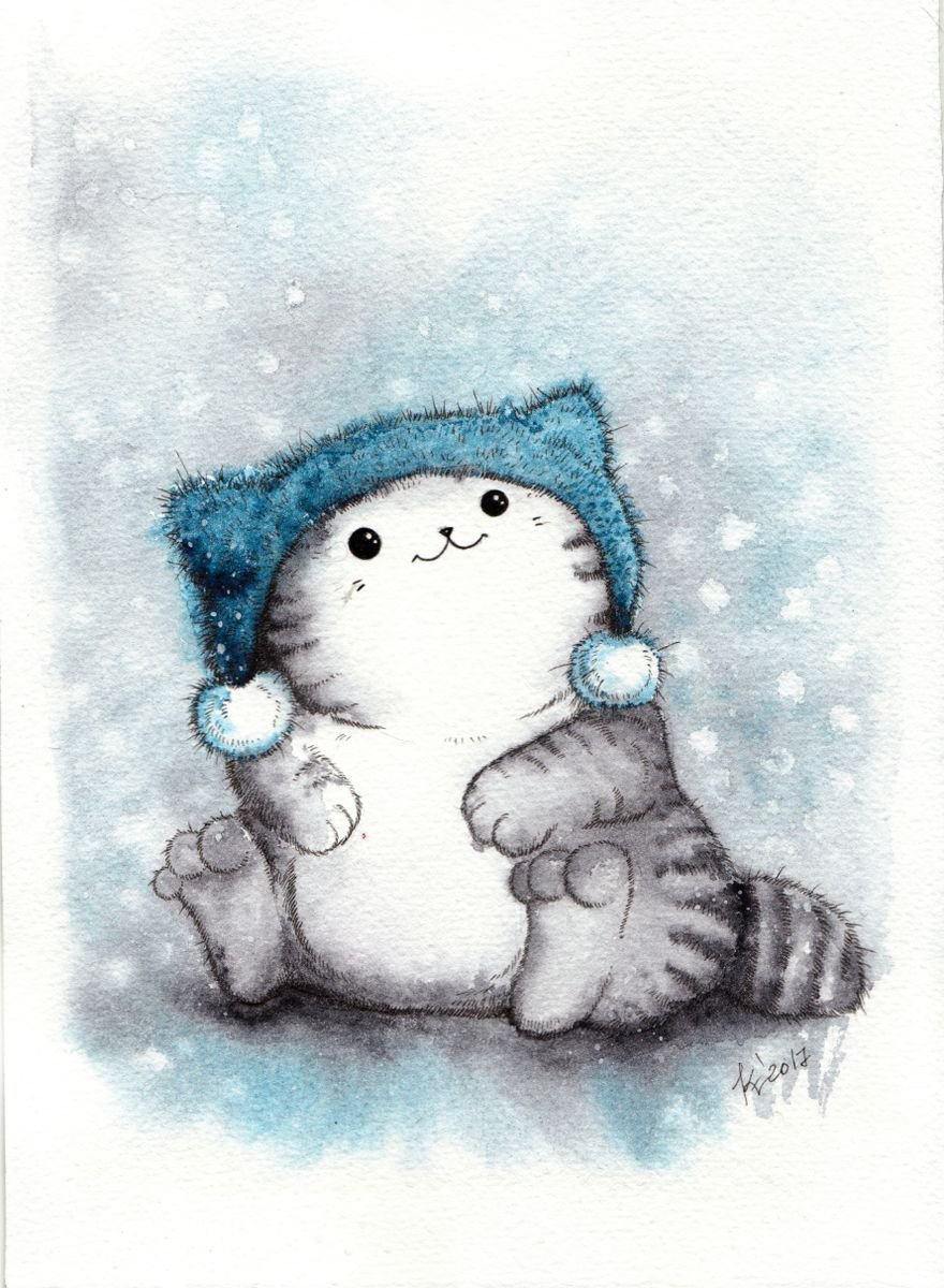 ![Котик новый год рисунок]()