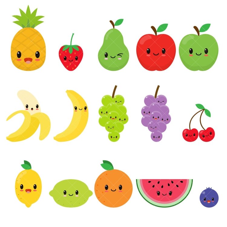 ![Кавайные фрукты для наклеек]()