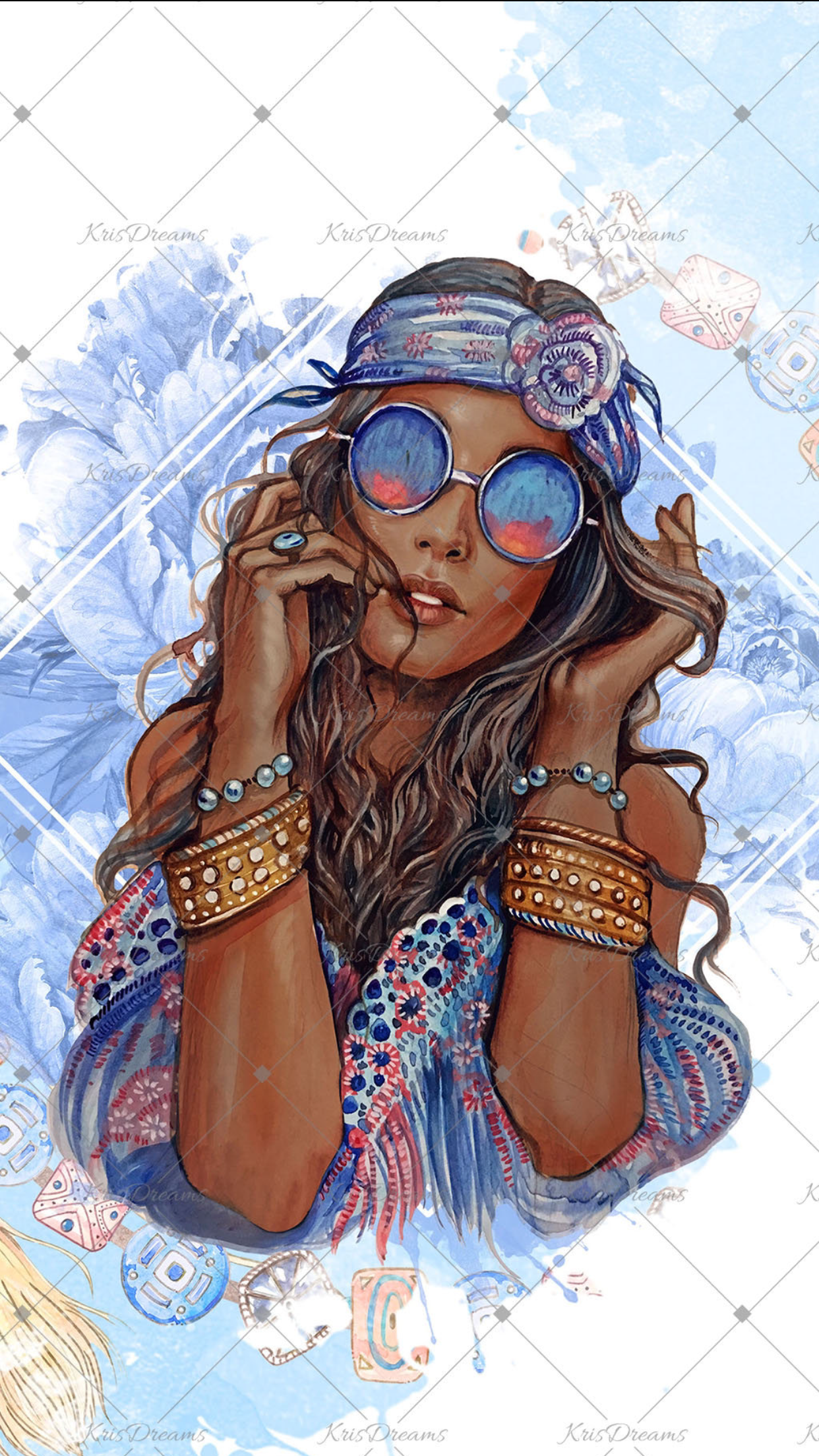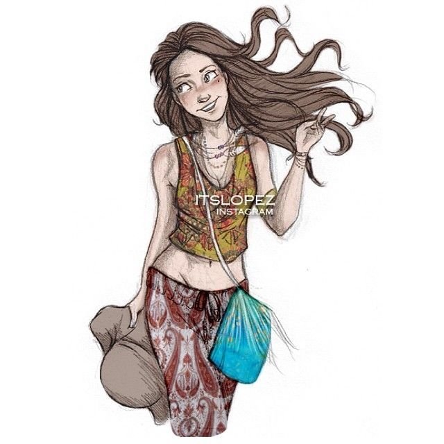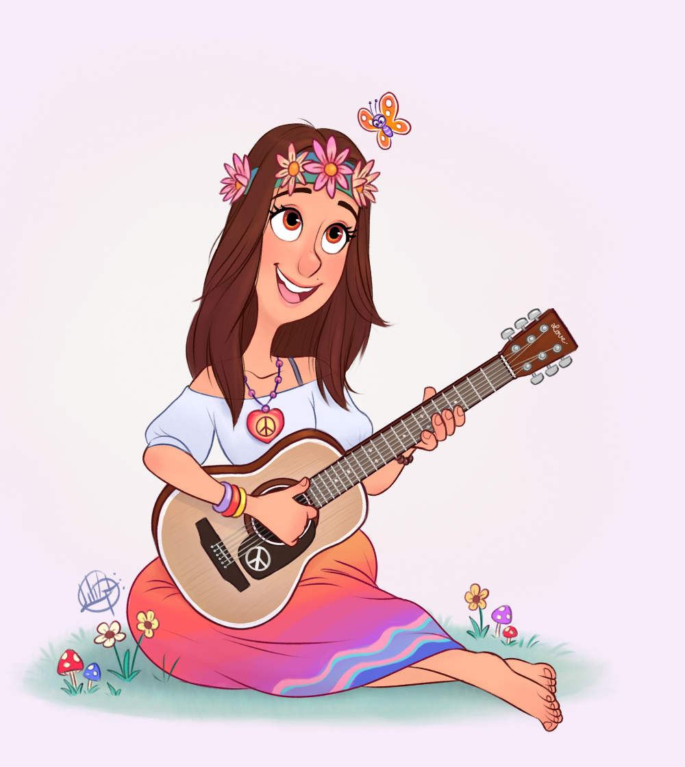 ![Девушка хиппи арт]()