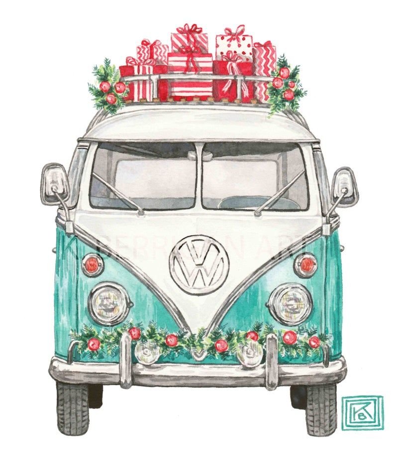 ![Новогодняя машинка акварель]()