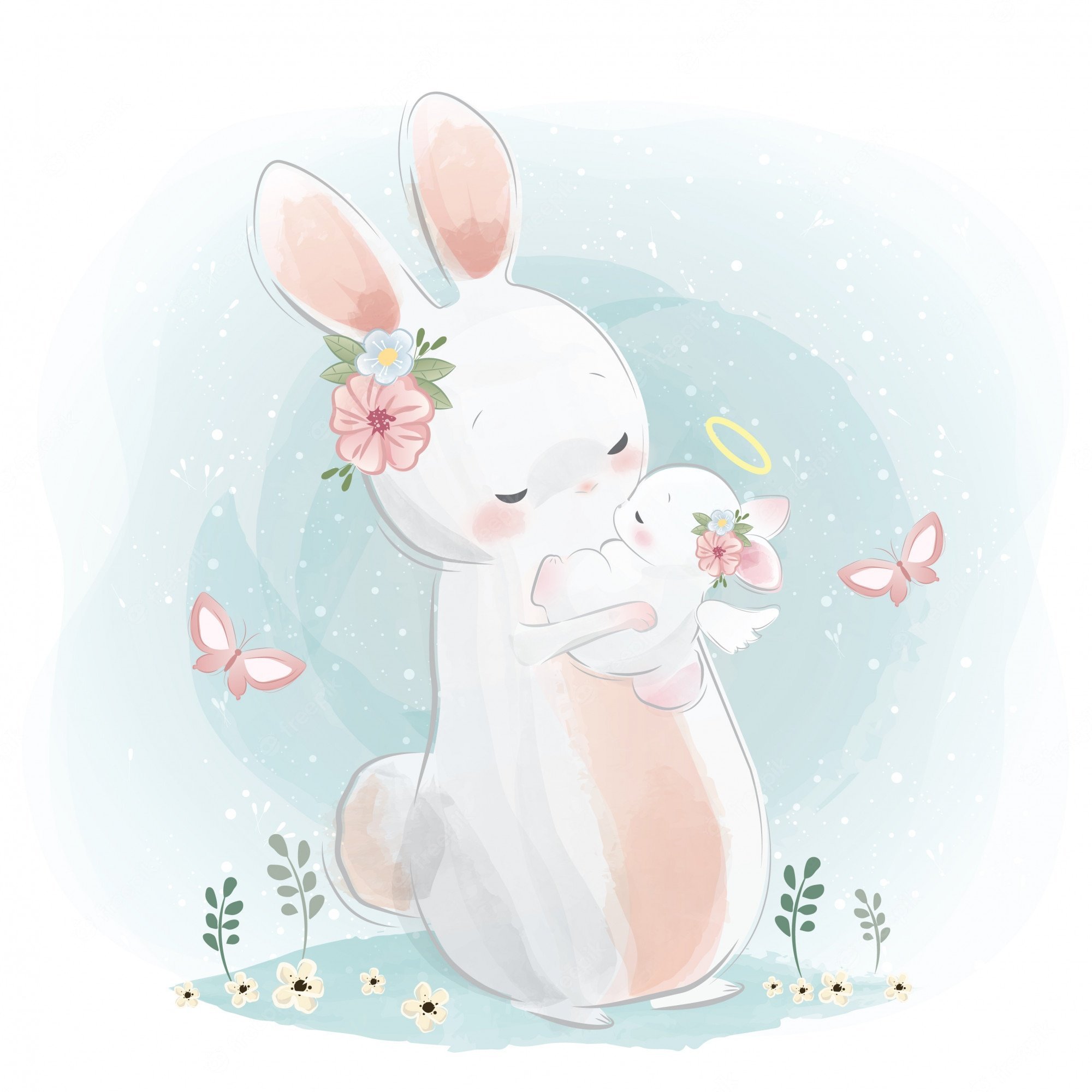 ![Зайчиха и Зайчонок акварель]()