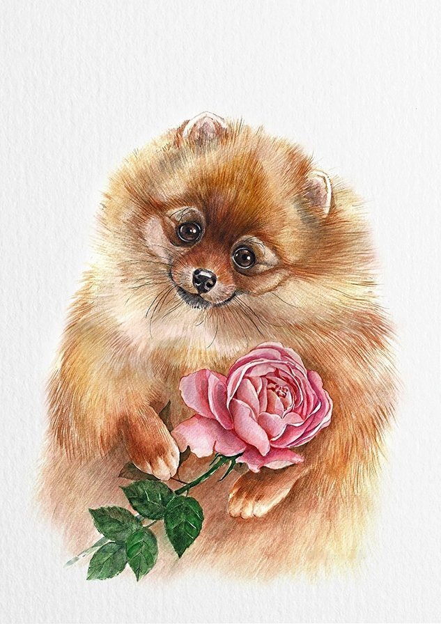 ![Милый шпиц рисунок]()