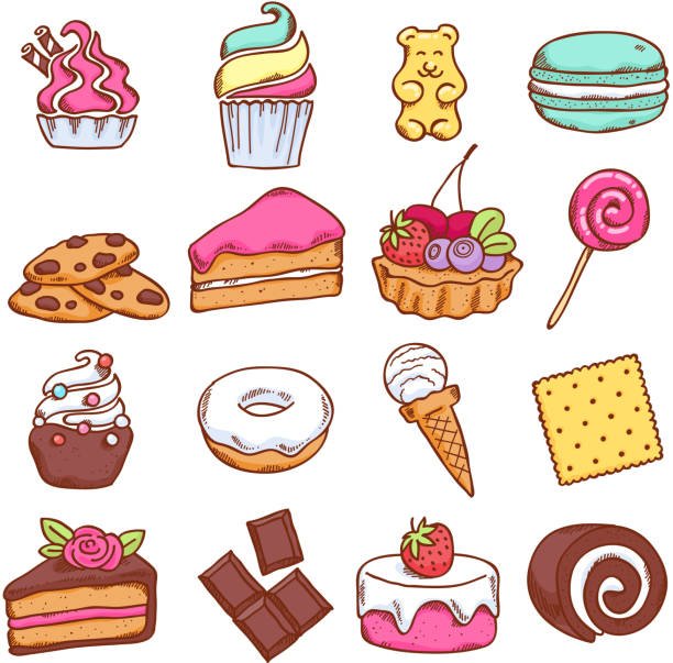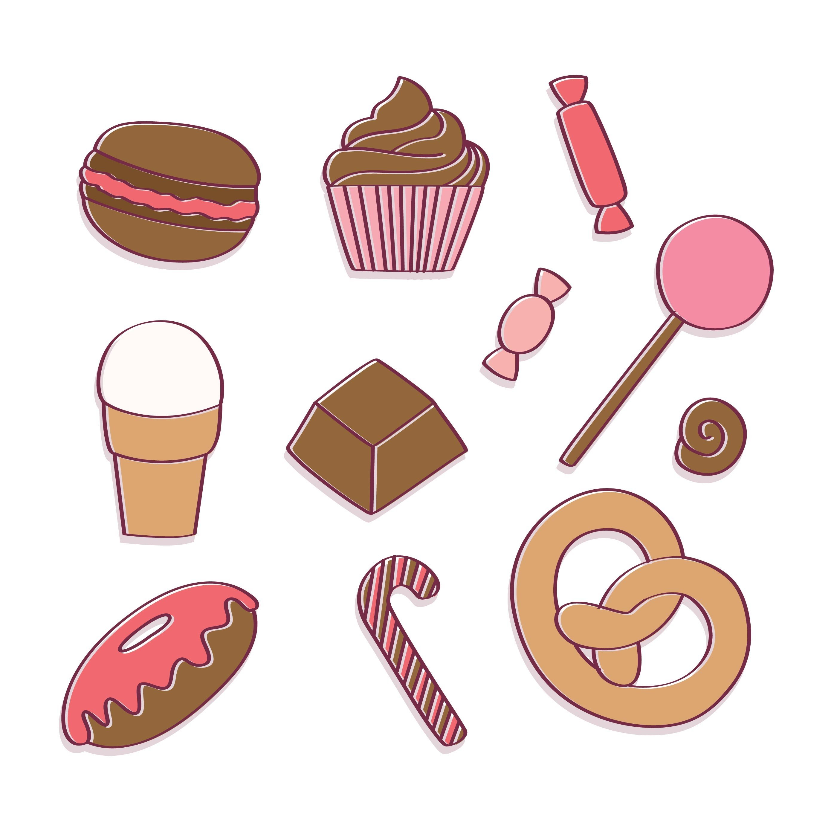 Набор иконок нарисованных сладости