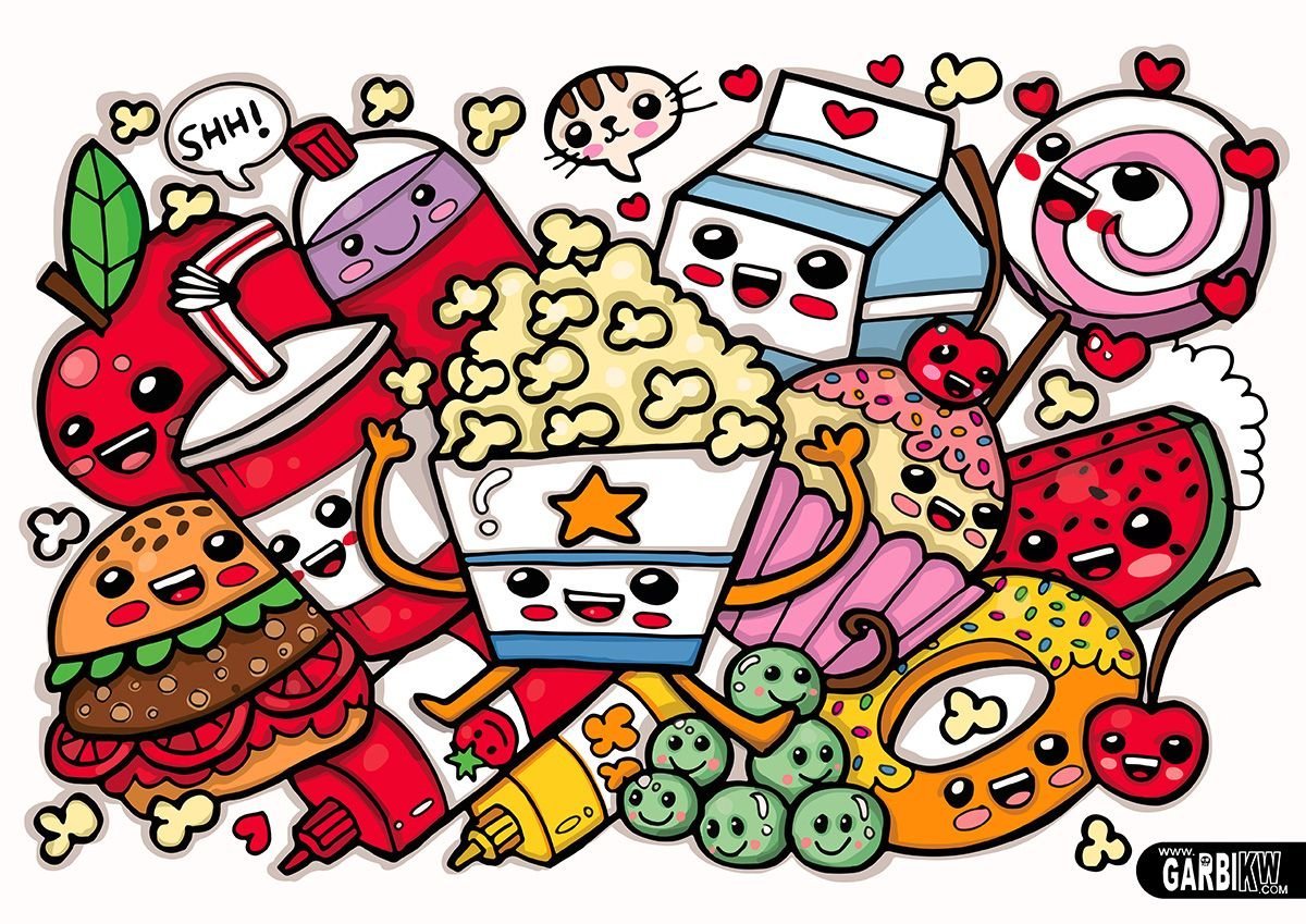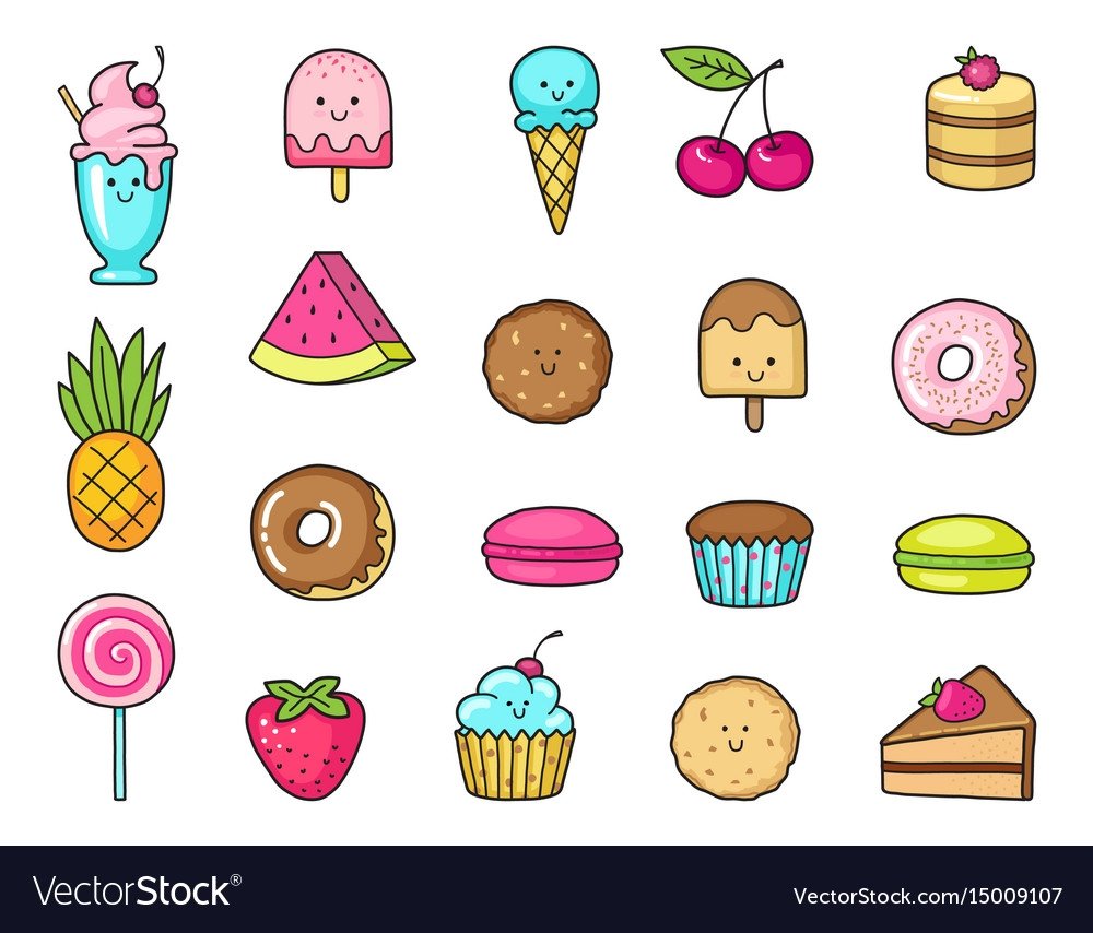 ![Милые рисунки фруктов и вкусняшек]()