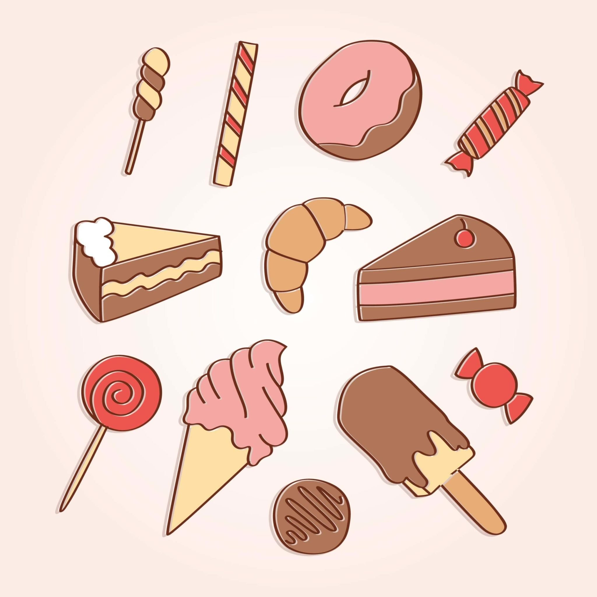 ![Набор иконок нарисованных сладости]()