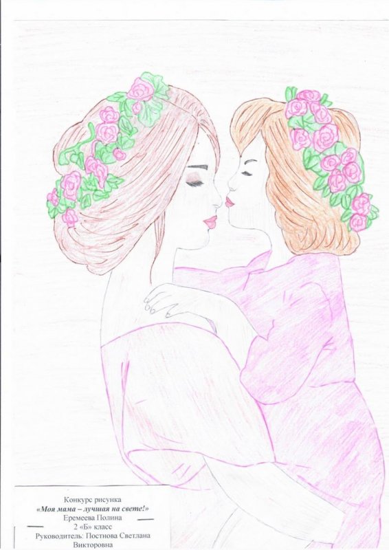 Мама милая моя, как же я люблю тебя! Ты всегда поддерживаешь меня во всем, и сегодня я хочу рассказать о своем рисунке в школе. Я изо всех сил старался передать на бумаге то, что видел в своей голове. Мой рисунок - это яркая палитра красок, которая оживляет картину. Я нарисовал зеленые луга и голубое небо, на котором парят пушистые облака. В центре моего рисунка стоит дерево, украшенное яркими осенними листьями. Вокруг дерева играют веселые зверята: белка, ежик и зайчик. Они прыгают и веселятся, словно встретились на этом прекрасном месте, чтобы поделиться радостью жизни. Моя работа полна эмоций и чувств, и я с нетерпением жду, чтобы показать ее тебе, мама. Без твоей поддержки и любви, я не смог бы создать такой яркий и запоминающийся рисунок. Спасибо тебе, мама, за всю твою заботу и поддержку! Ты - самая лучшая!