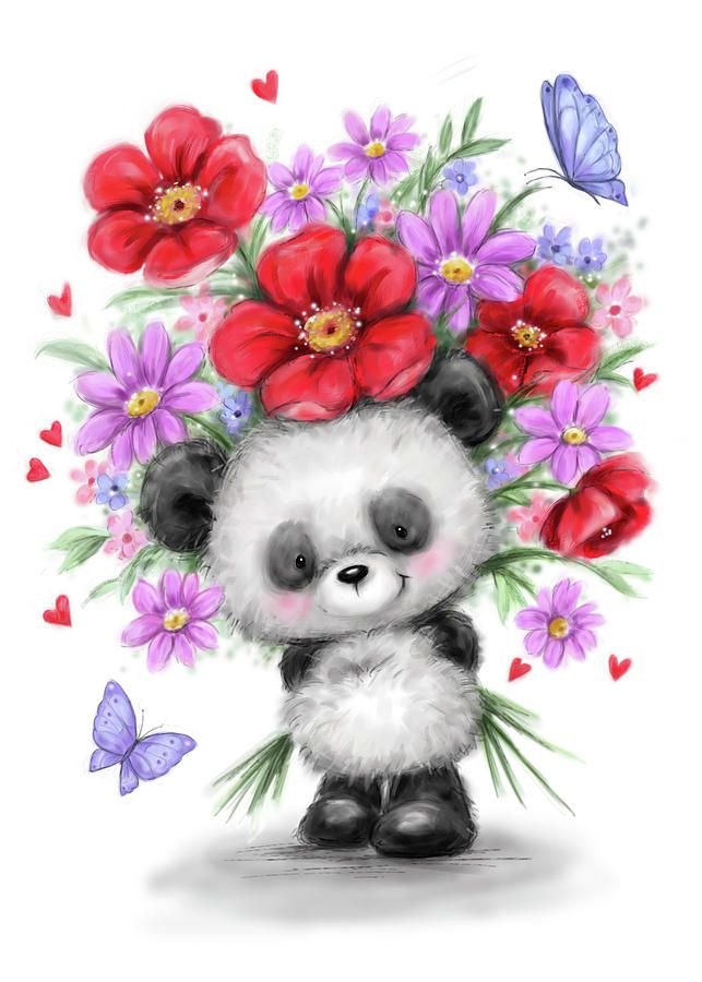![Милые зверюшки с цветами]()