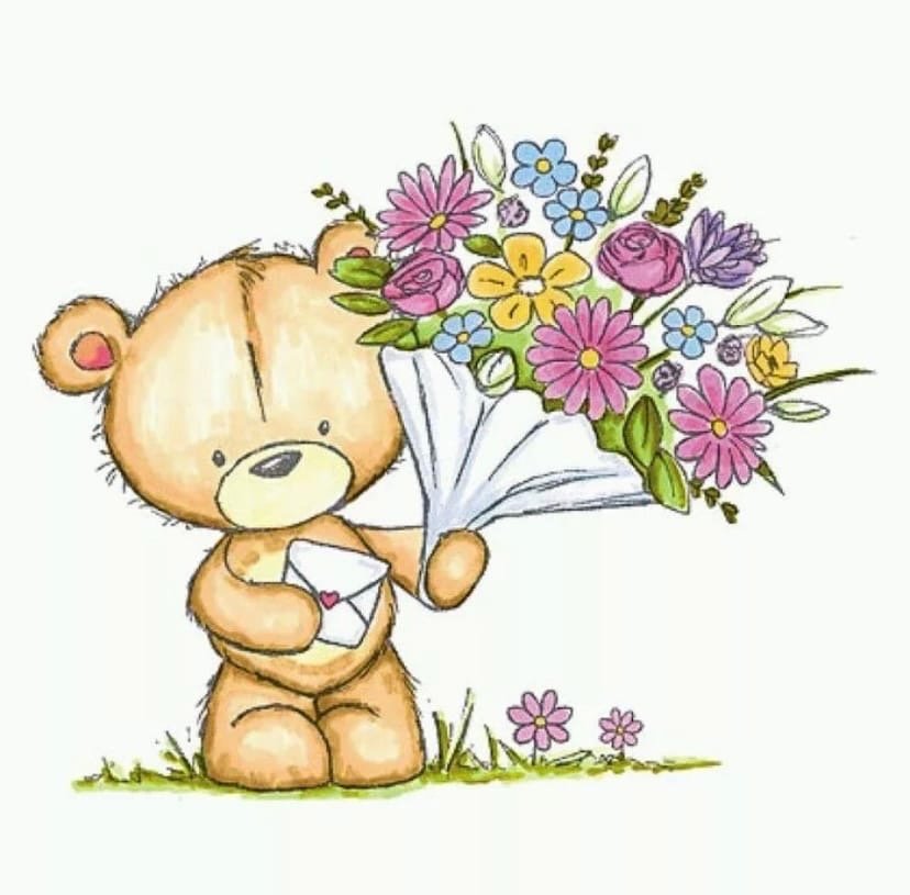 ![Милый Медвежонок с цветами]()
