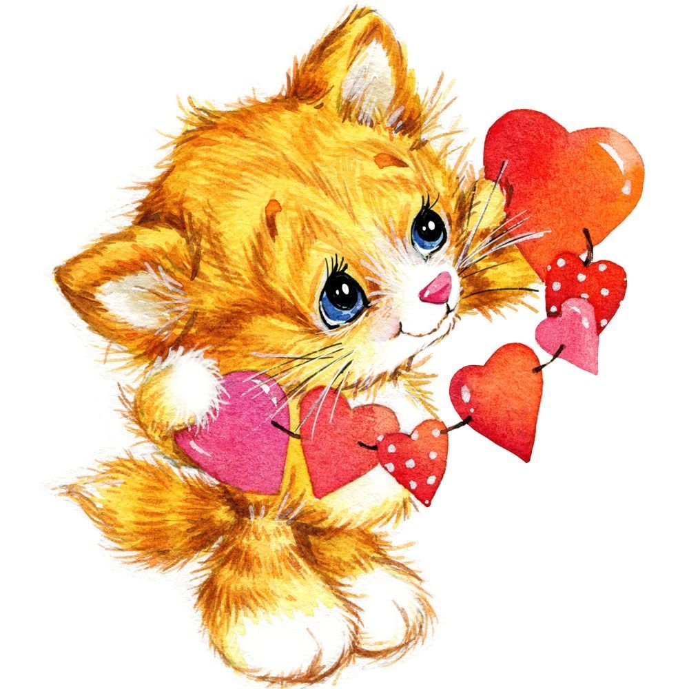 ![Рыжий котенок с сердечком]()