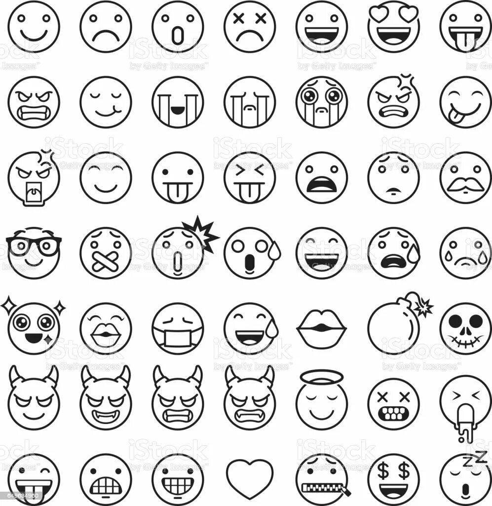![Эмоции смайлы для рисования]()