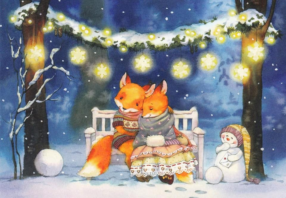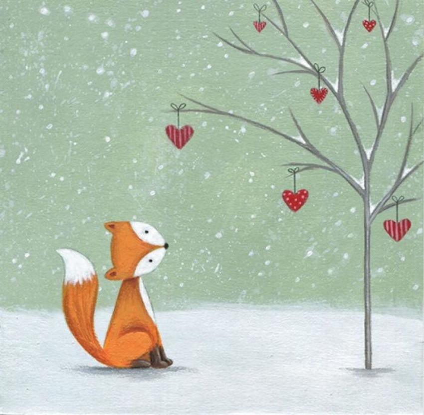 ![Новогодняя открытка с лисичкой]()