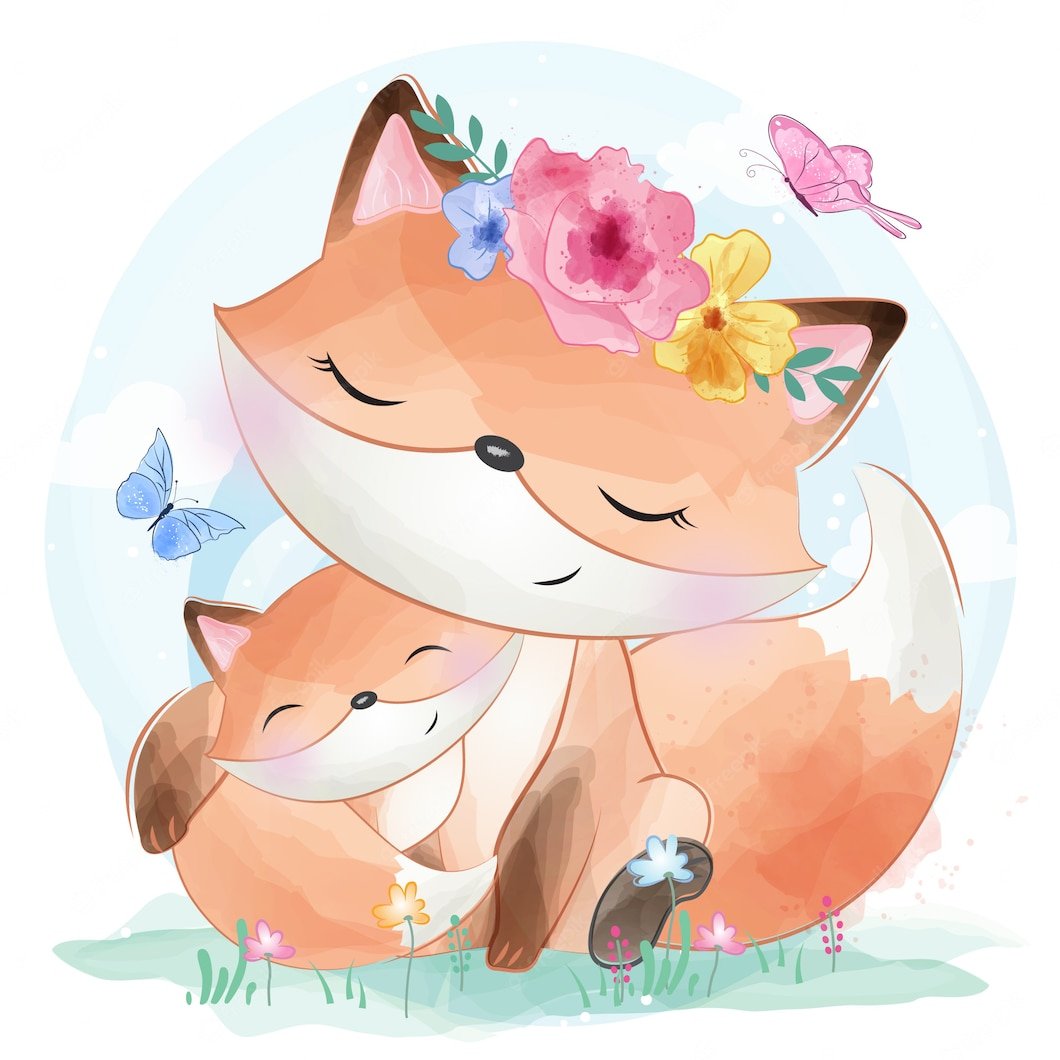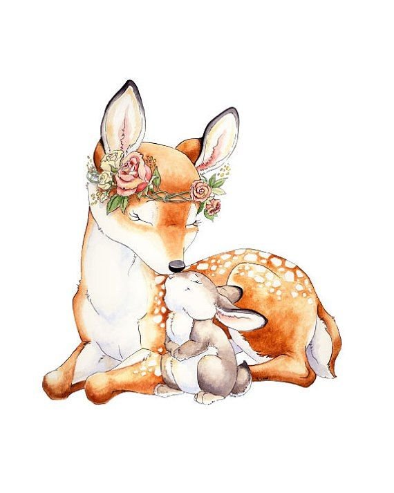 ![Акварельные животные мама и малыш]()