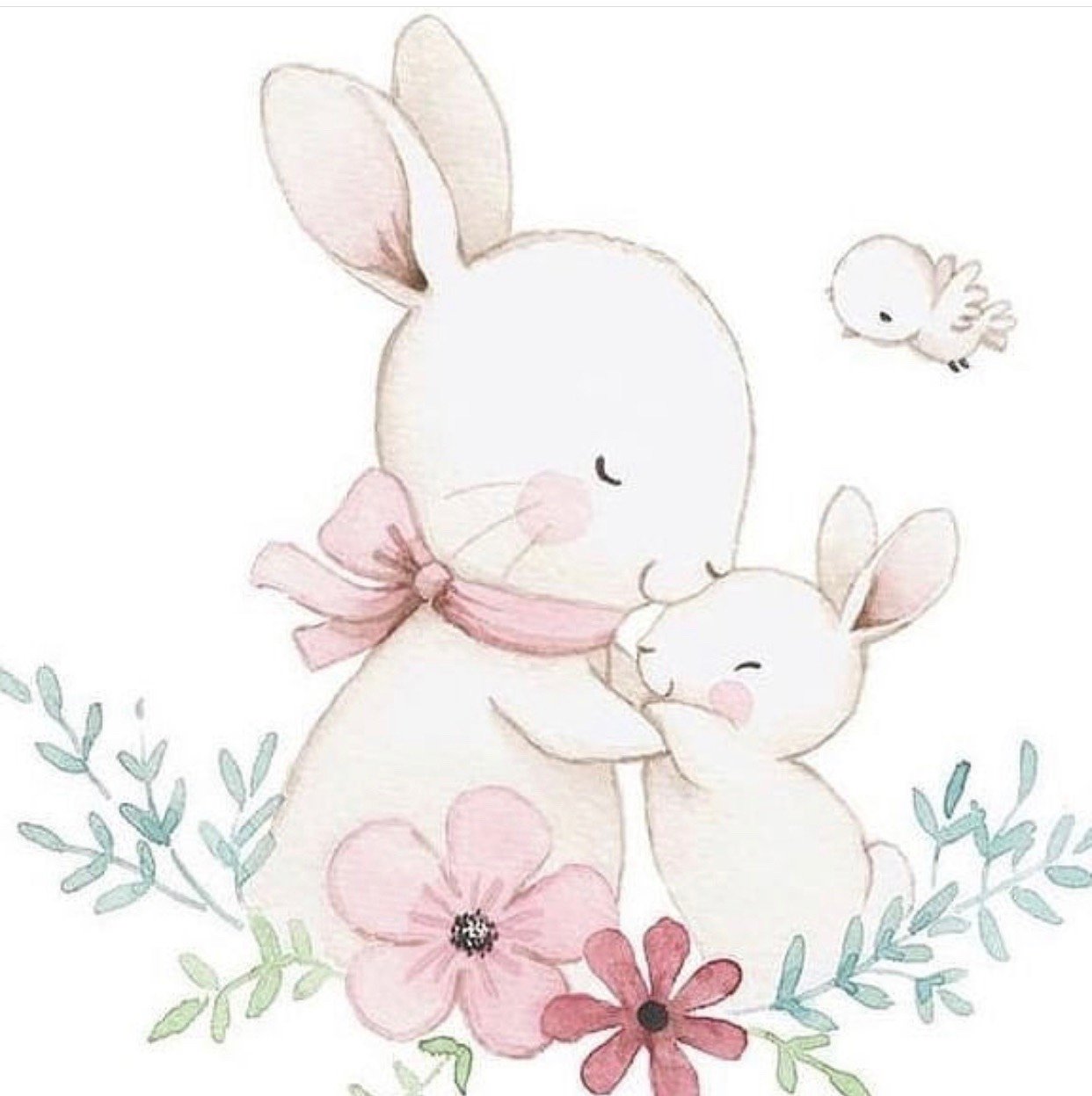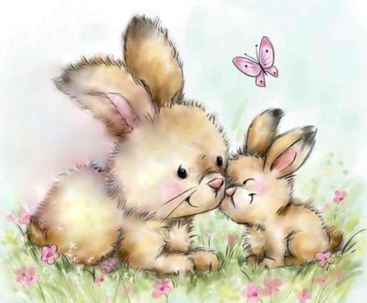 ![Зайчиха и Зайчонок акварель]()
