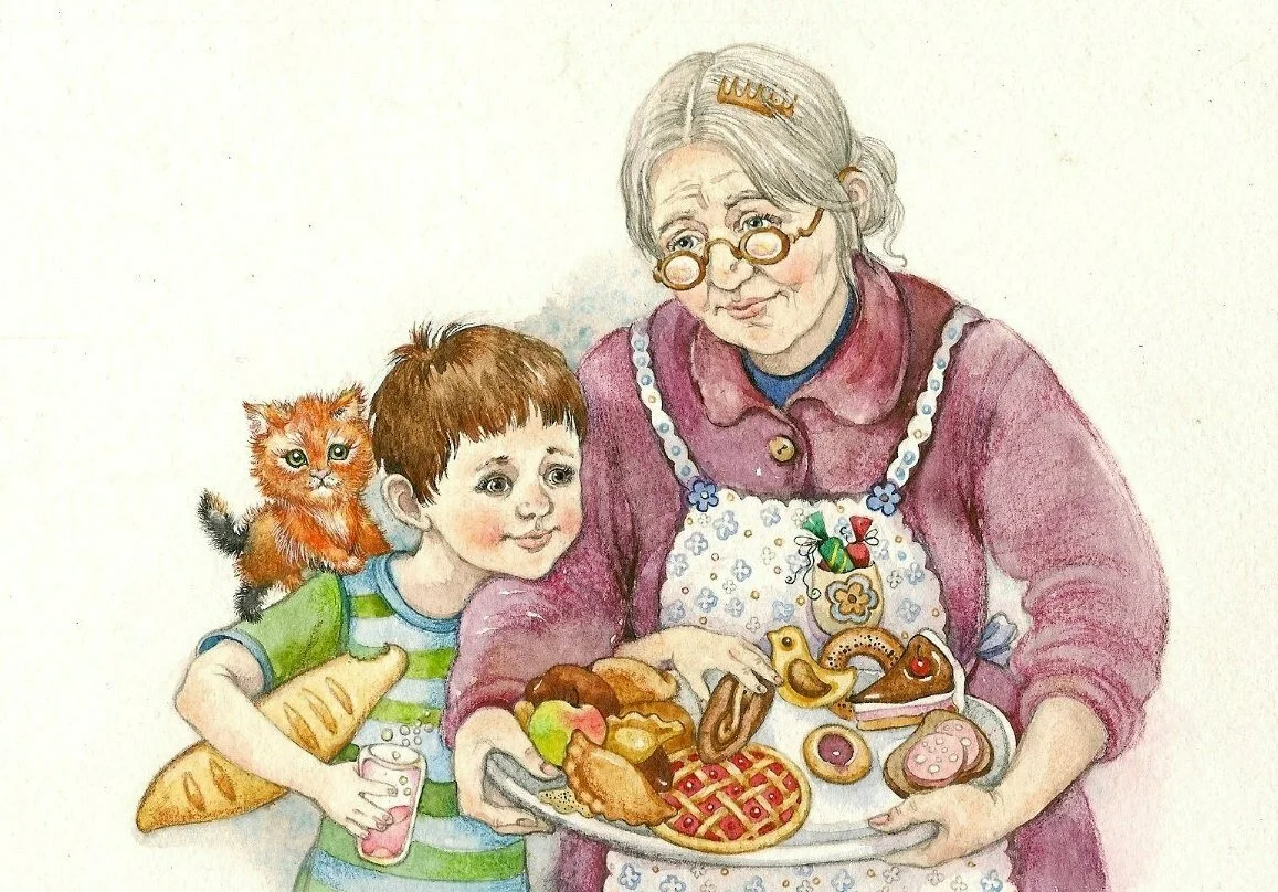 Бабушка и внуки иллюстрации