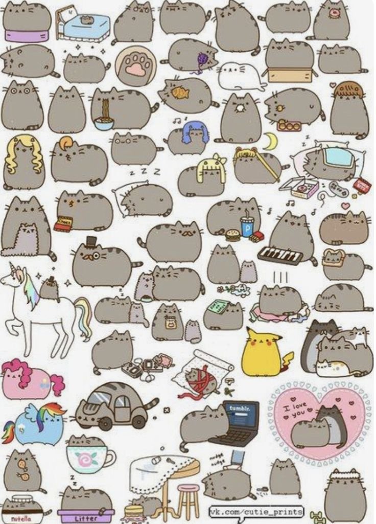 ![Много мультяшных котиков]()
