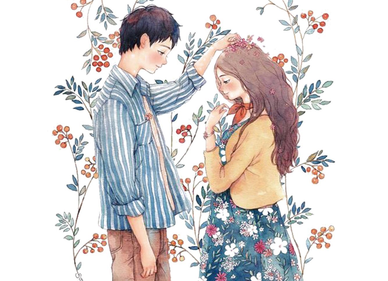 ![Мальчик и девочка акварель]()
