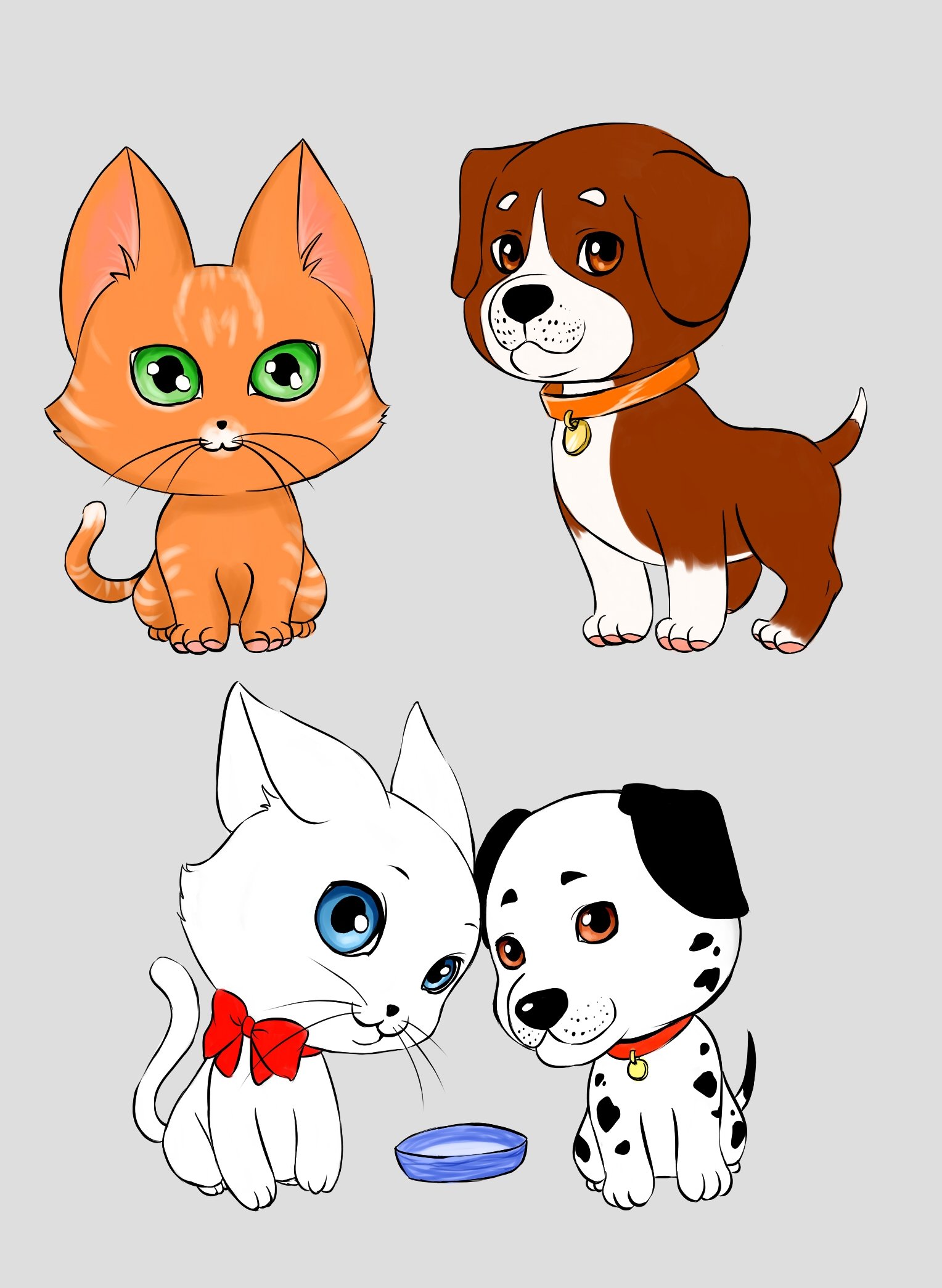 В поисках нежных и милых рисунков щенят и котят? У нас есть то, что ты ищешь! Наши уникальные и очаровательные иллюстрации воплощают все, что так любят люди - игривость, невинность и безусловную любовь животных. Разнообразие расцветок и поз, веселые выражения лиц и забавные аксессуары делают каждый рисунок уникальным и привлекательным. Наслаждайся этими прекрасными изображениями, чтобы развеять свои повседневные заботы и поднять настроение. Они идеально подходят для использования в детской комнате или в качестве подарка для любителей милых и пушистых созданий. Вперед, окунись в чудесный мир маленьких щенят и котят!