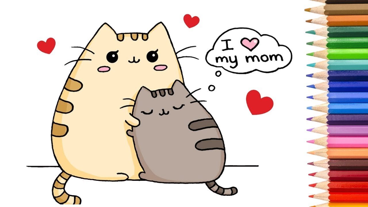 Открытка котик маме с др рисунок