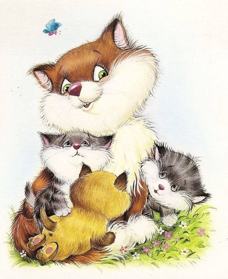Милые мультяшные котики с мамой